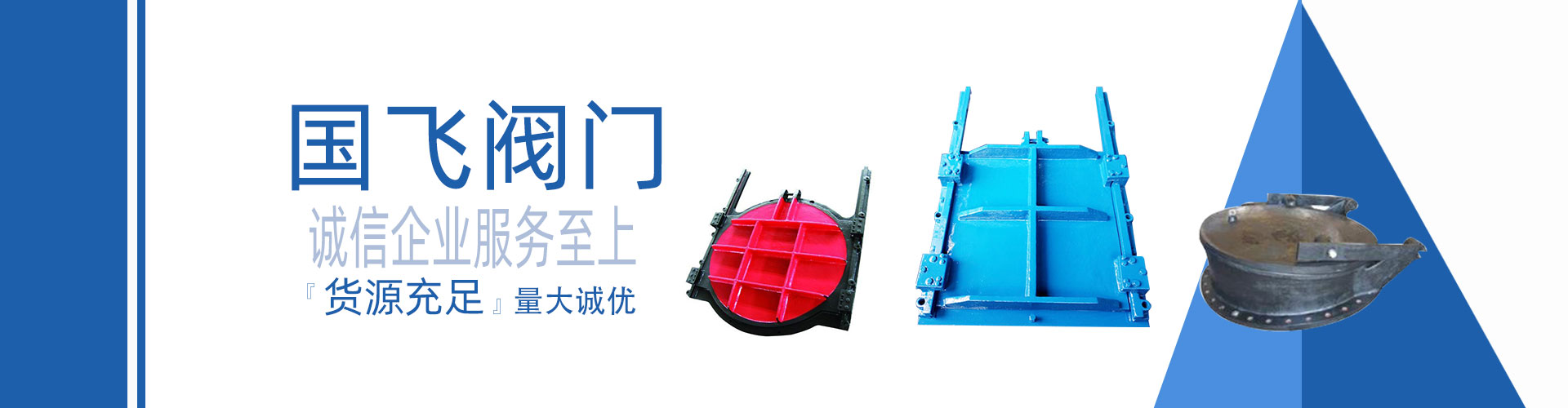 浙江國飛閥門科技有限公司坐落于擁有中國閥門之都”美稱的永嘉甌北,是集中開發(fā)、設(shè)計、制造、銷售為一體的科技型企業(yè),現(xiàn)主要生產(chǎn)的產(chǎn)品有污水處理閥,百葉閥、套筒閥、電動插板閥、不銹鋼渠道閘門、不銹鋼拍門、錐形閥、鑄鐵鑲銅閘門、電動通風(fēng)蝶閥、泄爆閥,配水閘閥,套套閥,浮筒閥,插板閥,電磁閥,燃氣緊急切斷閥,不銹鋼電磁閥,高爐煤氣閥、電力閥、石化閥配套和特種非標閥等10大類;產(chǎn)品廣泛應(yīng)用于石油、化工、冶金、建材、市政環(huán)保、制藥、電力等行業(yè)。